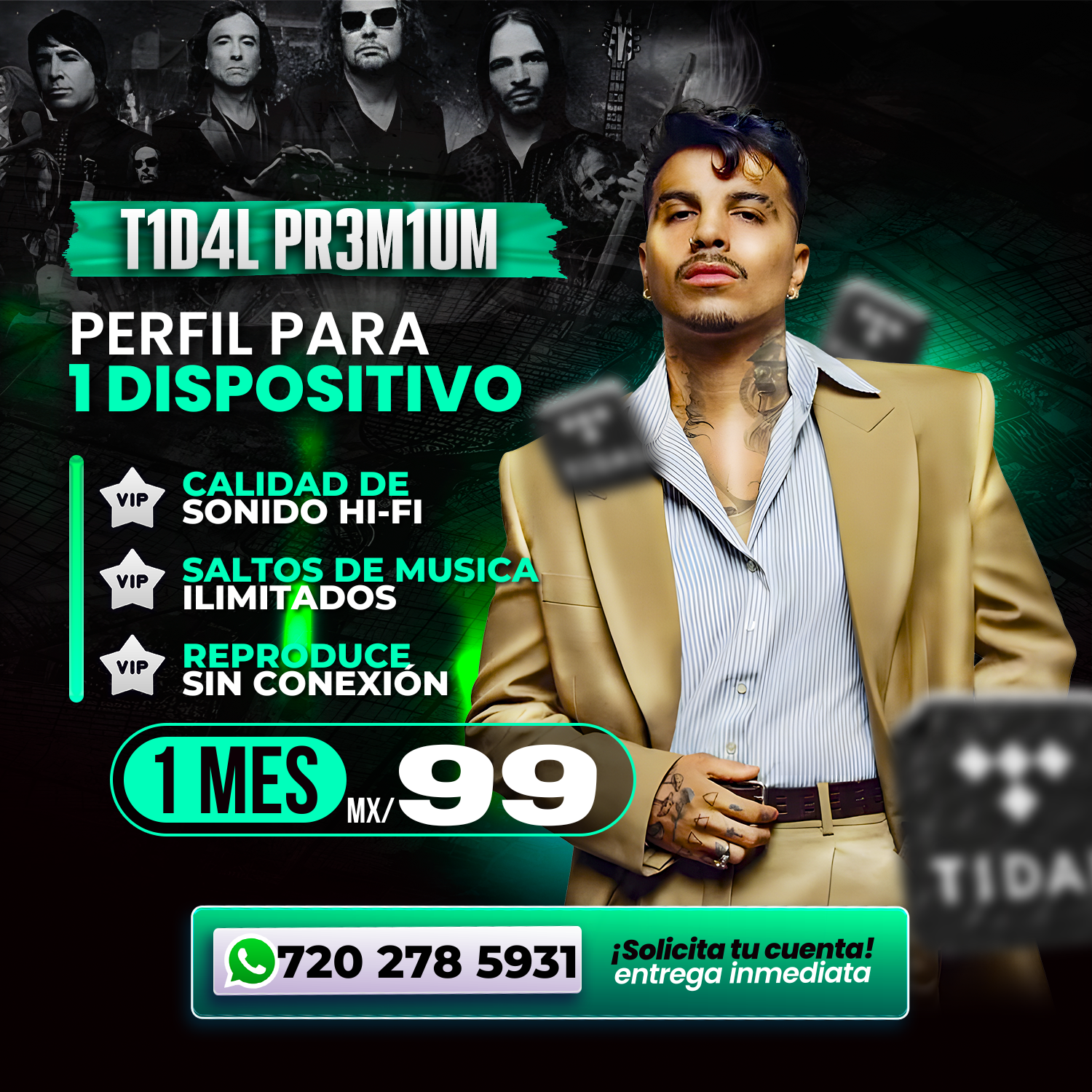 Disfruta de Tidal Premium y vive la música con audio de alta fidelidad. Escucha millones de canciones sin anuncios, descubre nuevos artistas y disfruta playlists exclusivas con una calidad de sonido superior.